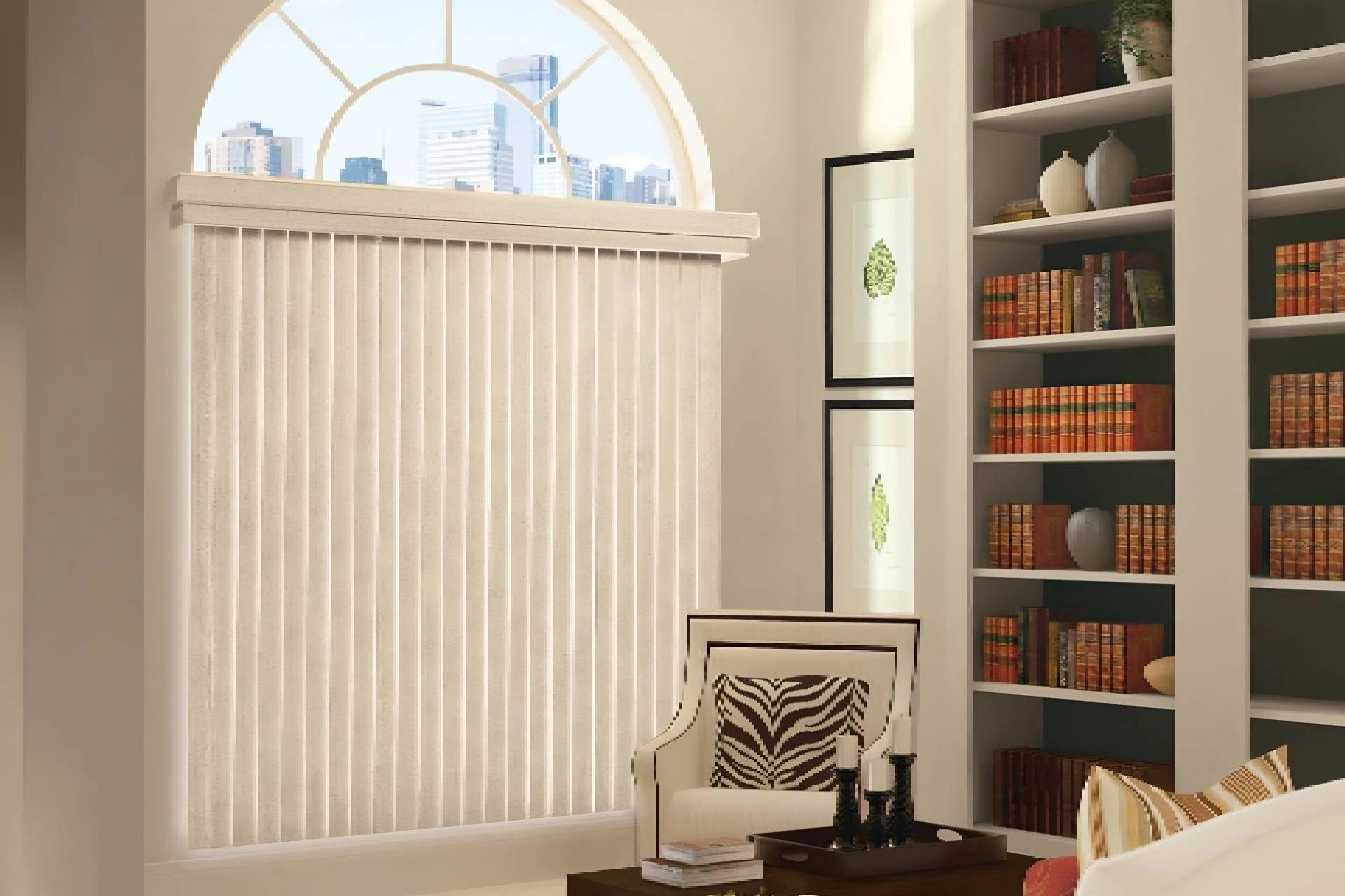 Some arched windows are extra tall or wide, and dealing with that can require a different approach when it comes to covering them. This is where vertical blinds come in! Perfectly made to fit large windows, vertical blinds are the absolute best choice for any extra large arched windows. Vertical blinds come in all kinds of truly stunning fabric options and in conjunction with all sorts of modern operating systems, make for the absolute best modern window treatment. Here, we have to recommend the Hunter Douglas Somner® Vertical Blinds.
